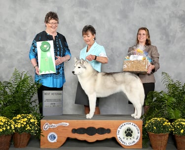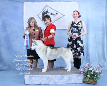 Siberian Huskies have been my primary breed for many years. Our family currently includes two Siberian “fur kids,” although in prior years, I’ve had as many as four Siberians, as well as a litter of puppies. I’ve been active in the sport of exhibiting Siberians (and an occasional Pug and Great Pyrenees!) in conformation competitions since 1998. I am a member of the Rocky Mountain Siberian Husky Club and the Siberian Husky Club of America.